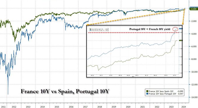 For the first time ever, Portugal's 10Y bonds are less risky than France's