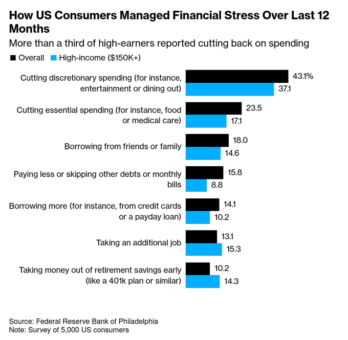Even high earners are worried about making ends meet, according to a poll from the Philly Fed