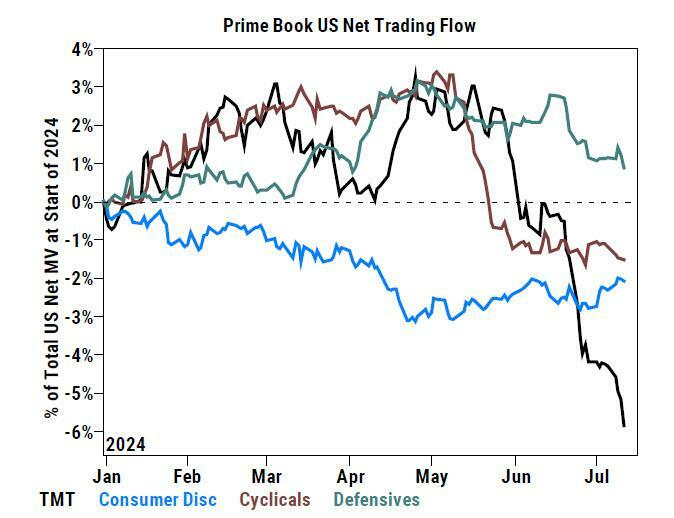 Hedge funds are still selling tech exposure down |