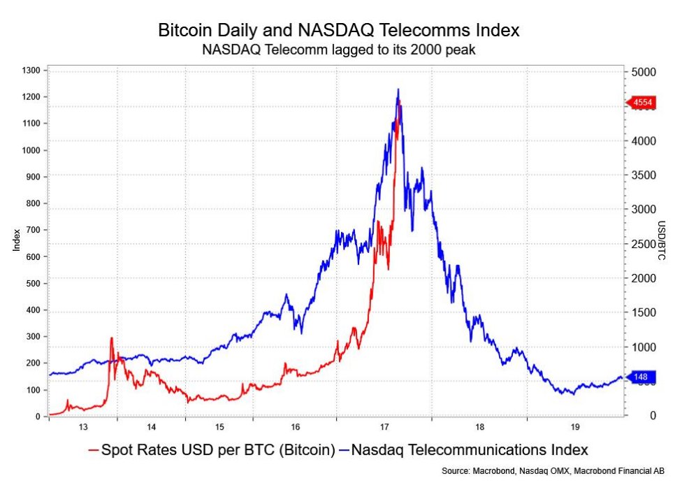 Bitcoin rapid gains resemble how stocks surged into the tech bubble before collapsing