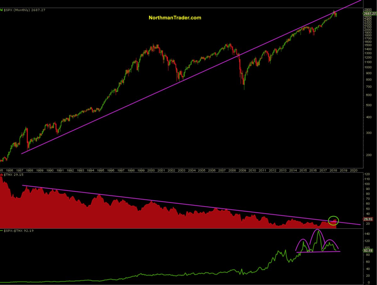 This chart shows the relationship between the S&P 500 and the 10-year Treasury yield