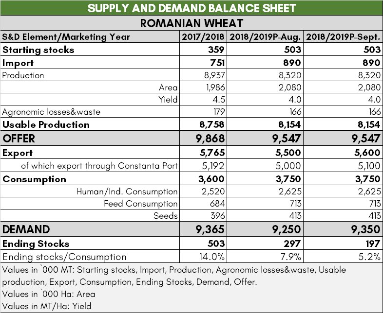 We estimate a 60.8% decline for the wheat ending stocks this season in Romania. Decline is fueled mainly by the lower crop and export demand