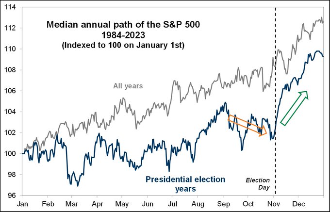 Today's rout is right on schedule: in presidential election years, markets peak right around Labor Day then trap door all the way until the election