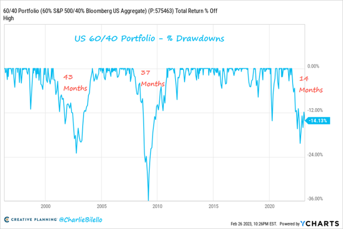 A US 60/40 portfolio is currently in a 14-month drawdown,