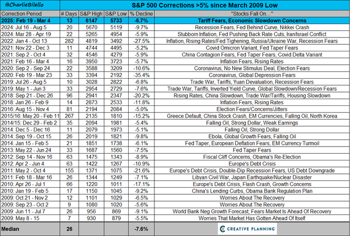 correction >5% off of a high since the March 2009 low