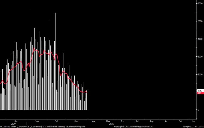 Last two days, the 7-day moving average of US covid deaths
