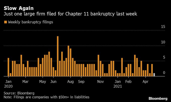 The number of large corporate bankruptcies dropped by almost