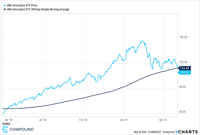 ARK Innovation ETF breaks below its 200-day moving average