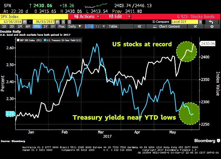 Holger Zschaepitz: Simultaneous rally of bonds & stocks will have to change. Markets need 30% stock drop or 50% higher Treasury yields