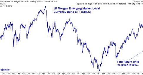 Since its inception, the Emerging Markets Local currency bond ETF has a total cumulative return of -.86%