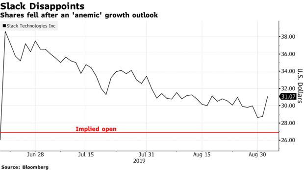 Slack shares tumble after the chatware company disappointed with its first report as a public company