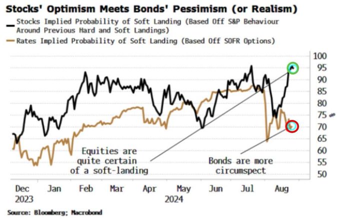 Stocks are bullish of the economy, but bonds are quite skeptical