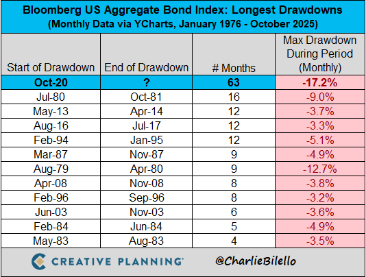 The US Bond Market has now been in a drawdown for 63 months, by far the longest in history