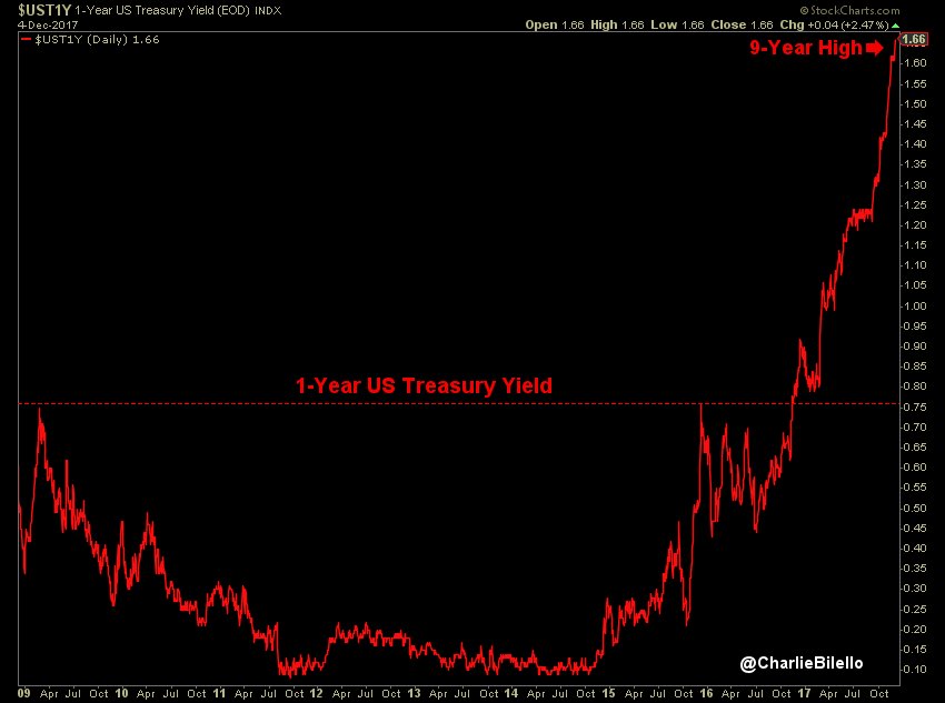 1-Year Treasury Yield climbs another 4 bps to close at its highest level in over 9 years: 1.66%