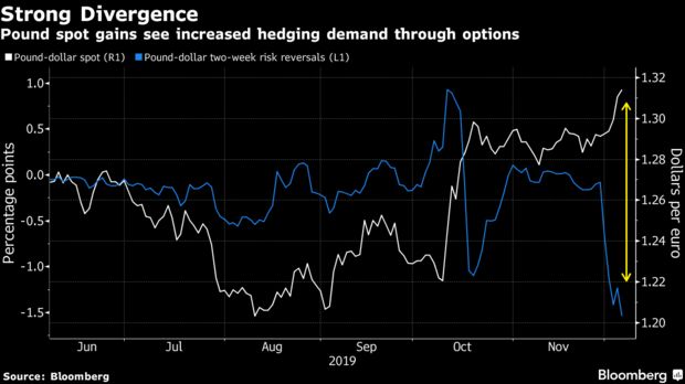 Even as sterling enjoys its longest winning streak since June on optimism Tories will win a majority in next week’s vote, traders are growing nervous