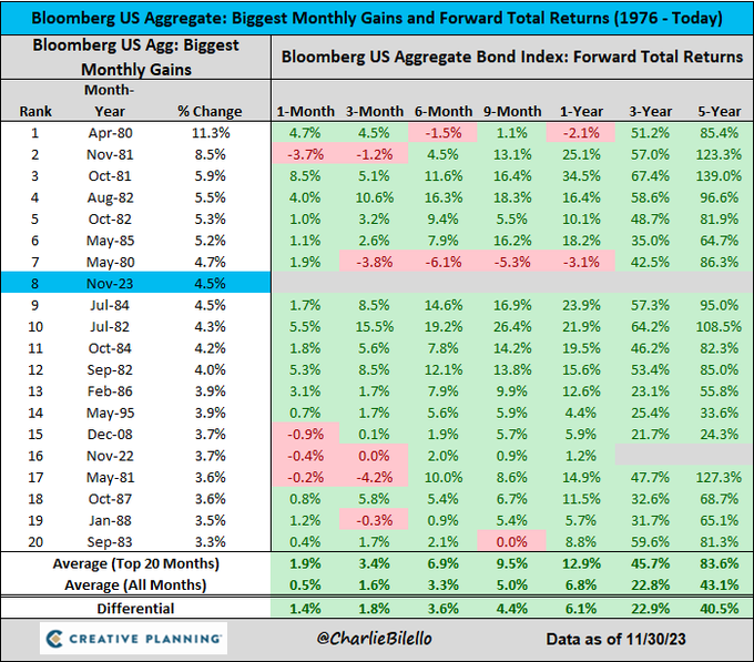 The US Bond Market gained 4.5% in November, the 8th biggest