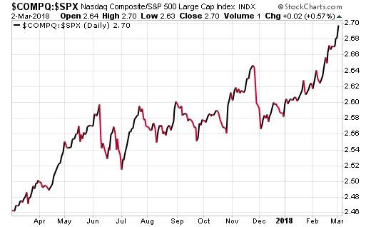 This chart shows the Nasdaq compared to the S&P 500 over the