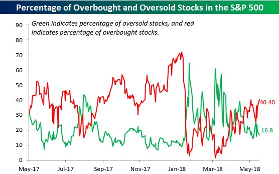 The percentage of S&P 500 stocks that are overbought is the highest it has been since 2/1