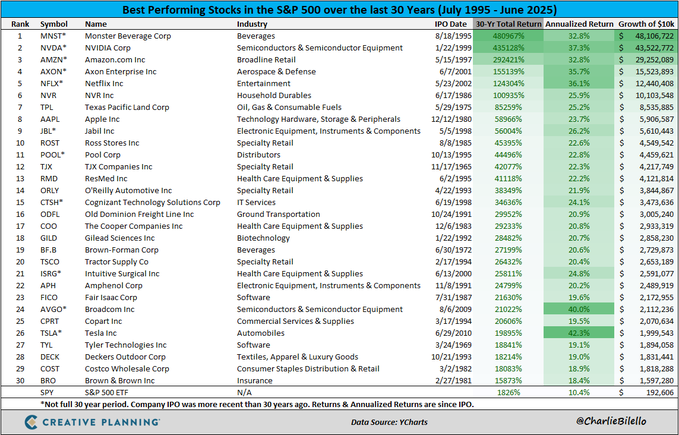 are the top 30 stocks in the S&P 500 over the past 30 years.
