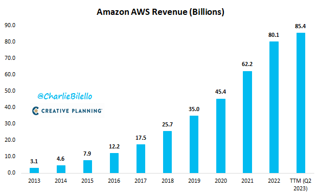 Amazon's AWS revenue over the last 12 months ($85 billion)