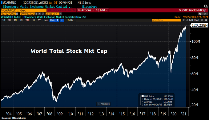 Equities now worth $120.3tn, highest in history because the