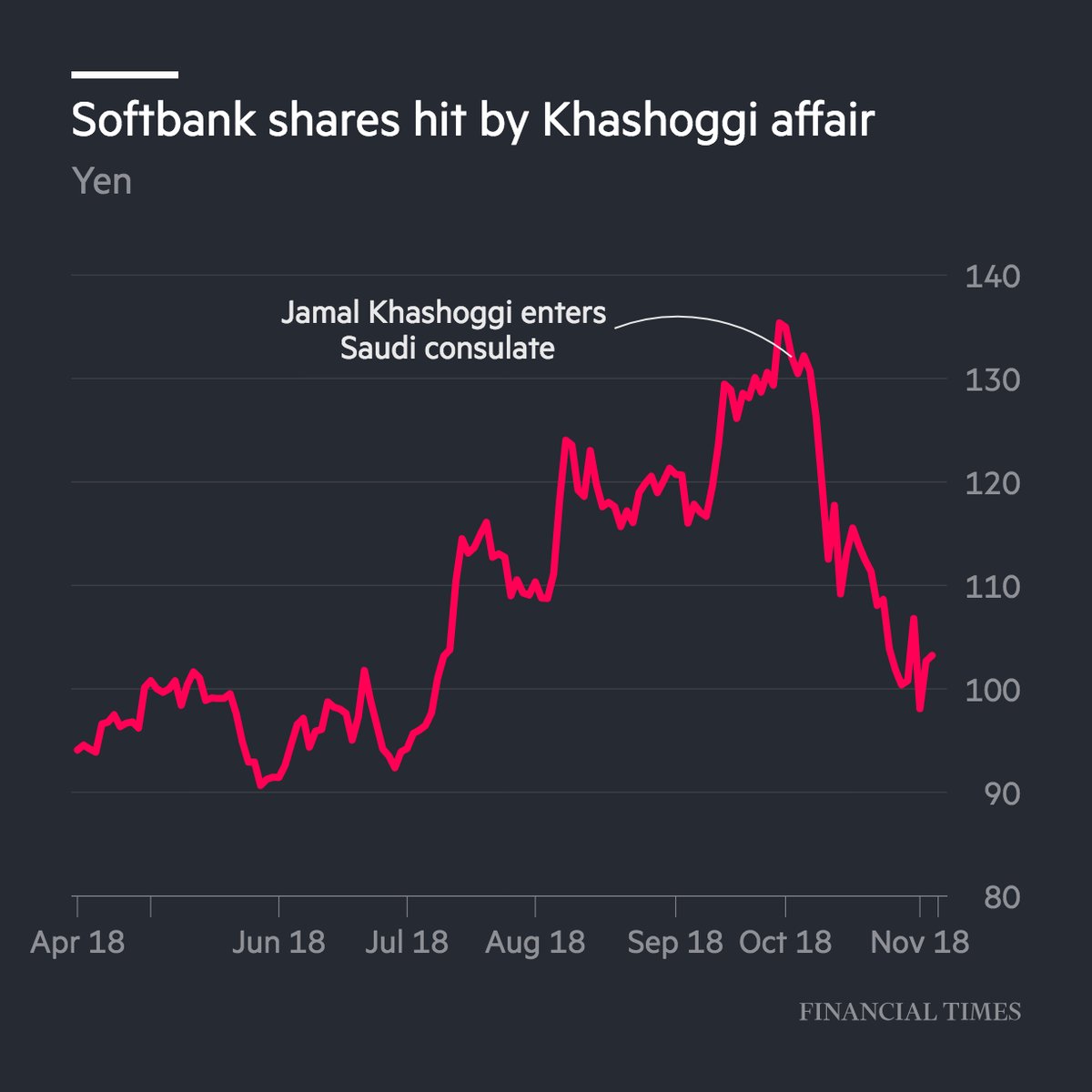 SoftBank has reaffirmed its investment ties with Saudi Arabia. Its shares have dropped have dropped 22% since the disappearance in early October of journalist Jamal Khashoggi
