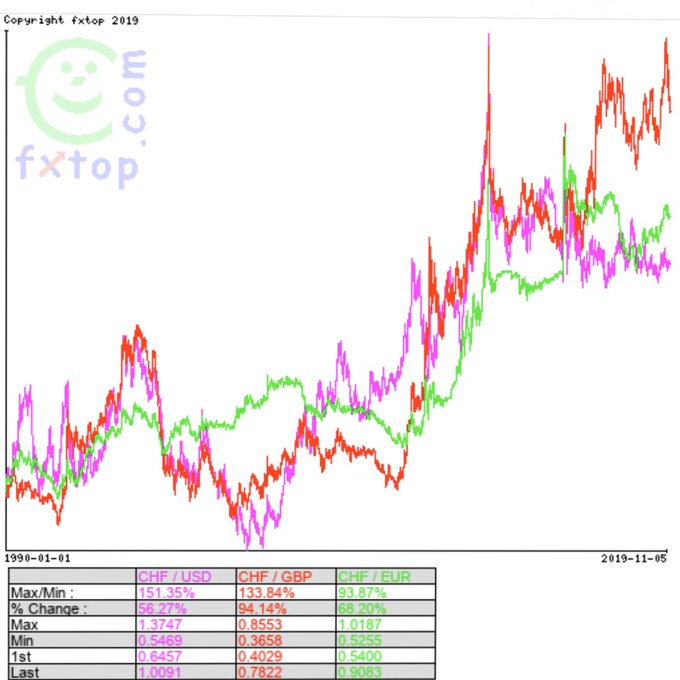 The swiss franc has historically increased in value versus all major currencies giving swiss stocks a currency advantage