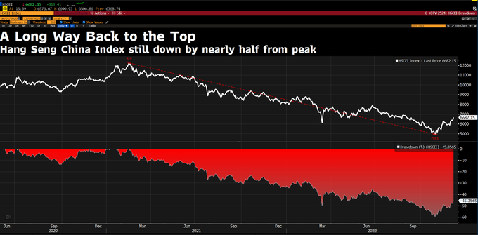 Just to underscore how far Chinese stocks have dropped in the last 2 years, the market's rallied 35% from the bottom and still down nearly half from the peak