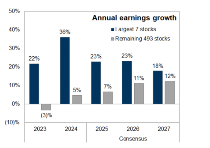"We expect earnings growth for the seven largest stocks will account for 6 pp of the total 12% S&P 500 earnings growth in 2026.