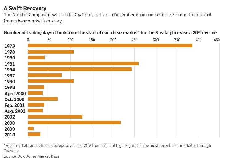Prompted by a tech rally, the Nasdaq Composite is on the cusp of exiting a bear market