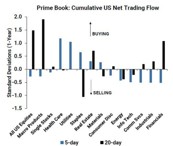 Hedge funds have been loading up on health care, utilities and consumer staples over the last week, according to Goldman