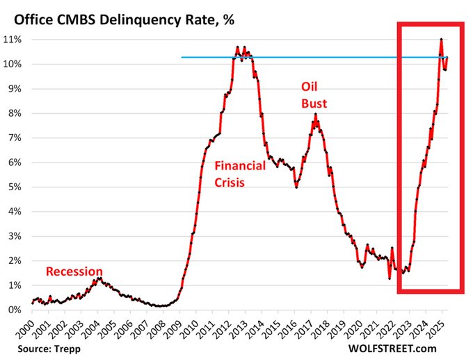 The delinquency rate on US commercial mortgage-backed securities (CMBS) for offices SURGED to 10.3% in April, near the highest EVER