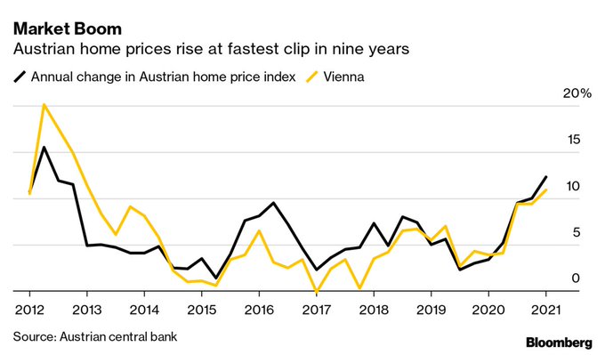 Austrian residential real-estate prices rose at the fastest