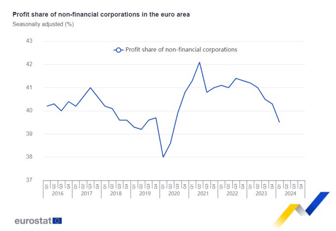 Euro area business profit share decreases to 39.5% in Q1 2024