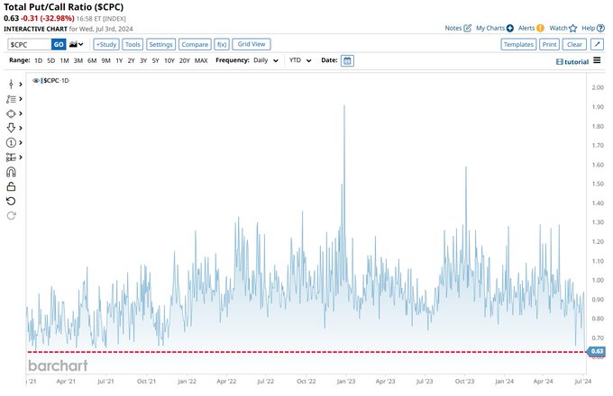 Total Put/Call Ratio drops to lowest level since January 2021