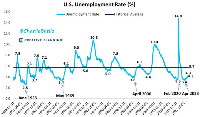 The US Unemployment Rate moved down to 4.1% in September from 4.2% in August and 4.3% in July. Remains well below the historical average of 5.7%.
