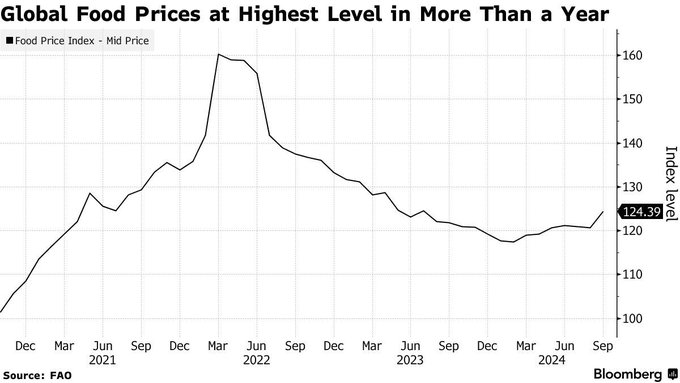 Global food prices saw the largest jump in 2.5 years in September, with sugar prices leading an across-the-board increase for commodities including wheat and edible oil