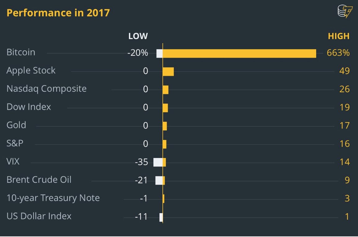 Bitcoin growth in 2017 compared to AAPL and other stocks!