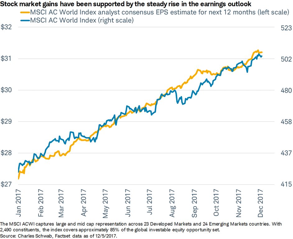 Why have global stocks gone up every month so far this year? Earnings have too (both actual and expected)