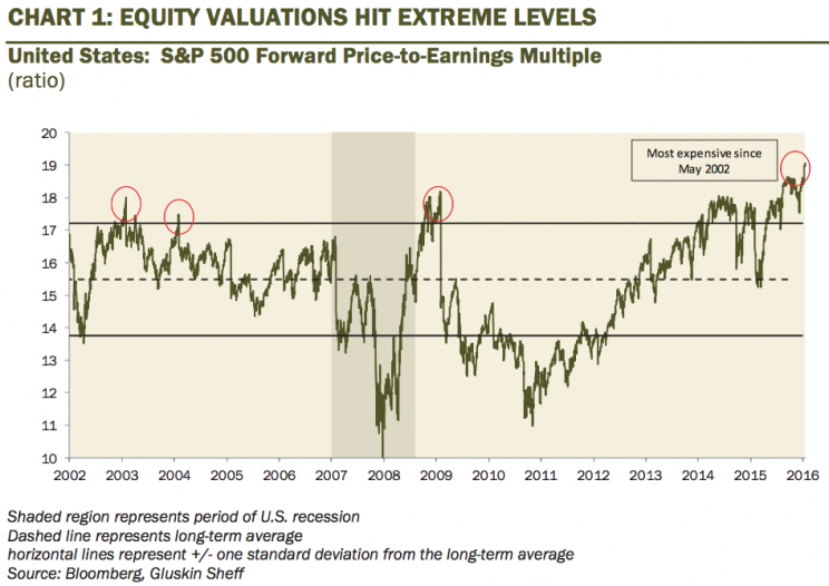 The S&P 500's forward P/E Ratio is approaching 15 year highs. But it's nowhere near the Dot Com Bubble