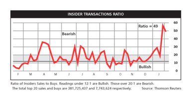USA: The ratio of insiders selling stock compared to buying is spiking to multi-year highs right now