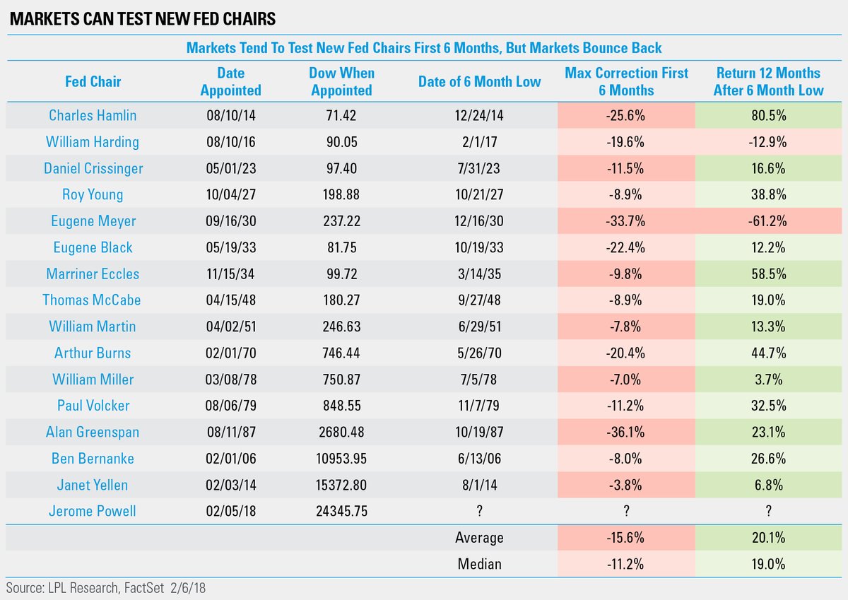 Ryan Detrick, CMT - Historically stocks can have trouble the first 6 months after a new Fed chair, with the Dow down 15% on average at the lows. The good news? Up 20% on avg 12 months after the lows are made