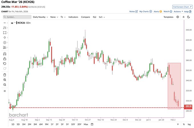 Coffee plunges to its lowest price since August