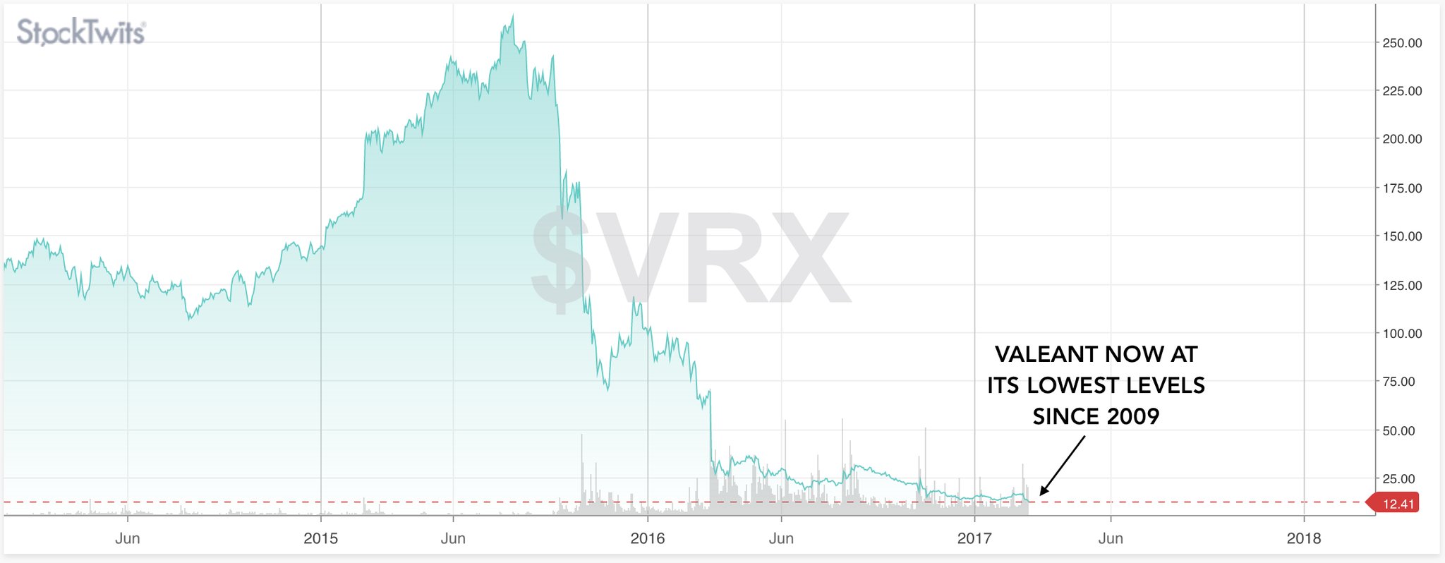 Valeant is down 82% over the last year. Bill Ackman still holds 18 million shares