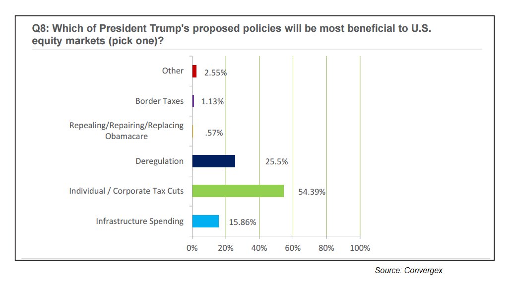Less than 1% of investors believe that replacing Obamacare will be the most beneficial to stocks
