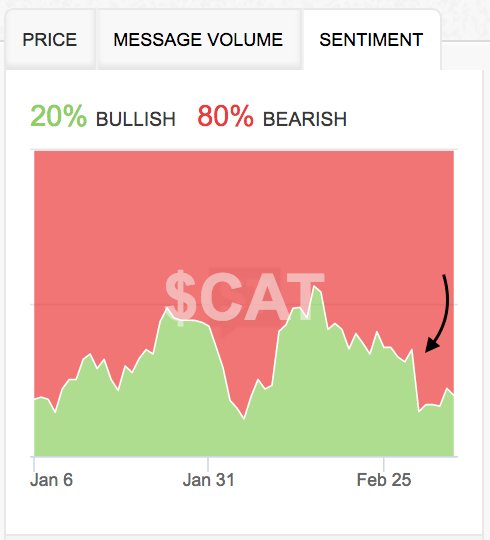 Sentiment for Caterpillar has almost never been this bad. Bullish sentiment is down 14% since the Fed raid