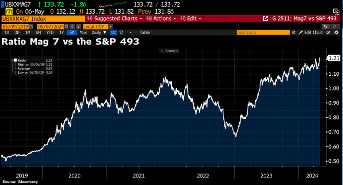Don't fight the Mag 7: The ratio of the Mag 7 vs the S&P 493 (S&P 500 ex Mag 7) has just hit another ATH.