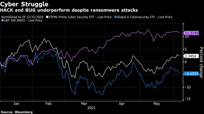 Cybersecurity-focused ETFs are struggling to capitalize on a slew of high-profile hacks