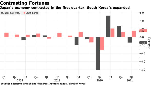 Japan and South Korea release revised output figures that will confirm their contrasting fortunes