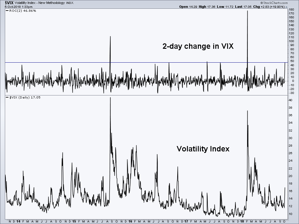 The VIX spiked, one of the largest 2-day changes in the last 5 years